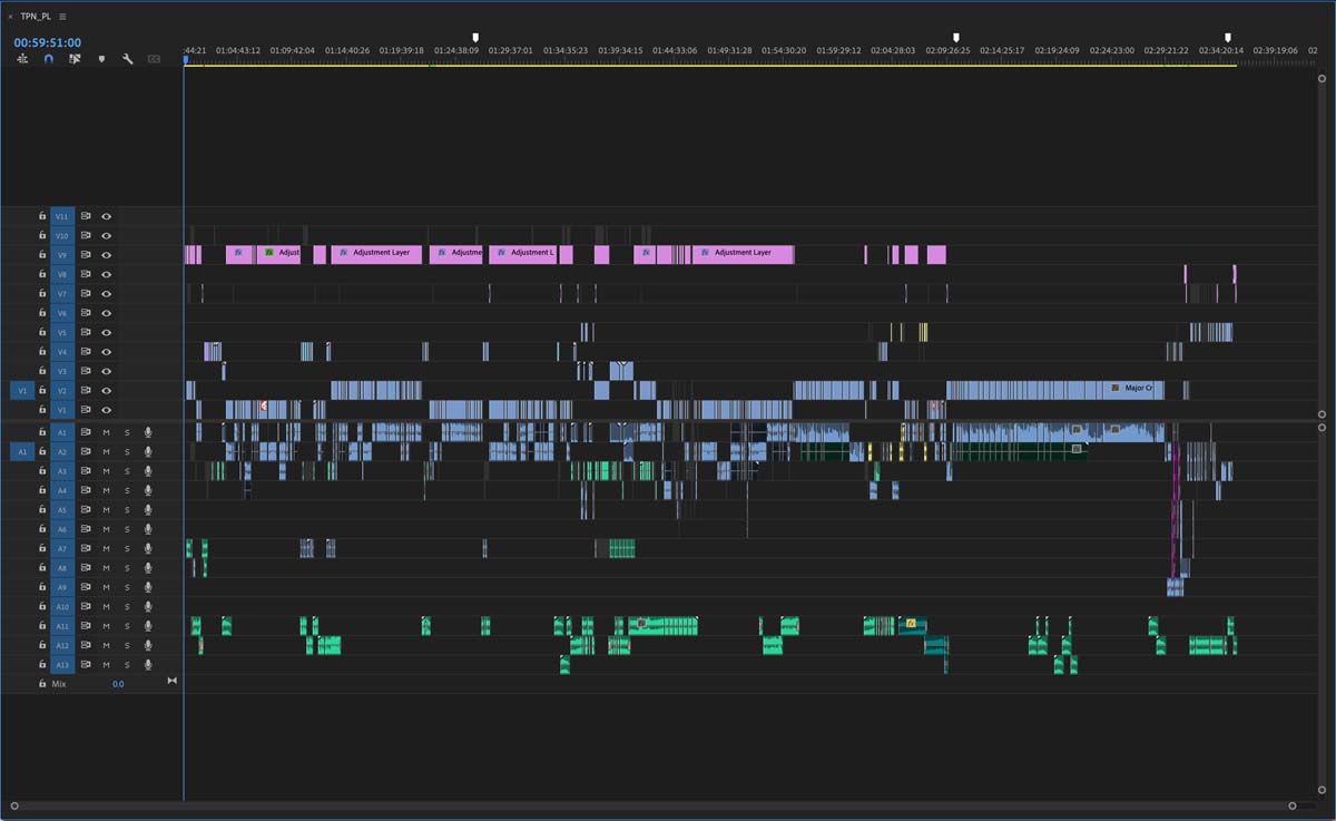 I wanted to see the blank spaces between cameras - when they came and they went. I wanted to see all of the audio. In some ways this timeline was the most simple I think I’ve ever edited, then in some ways it was the most complicated, because I was so precious.