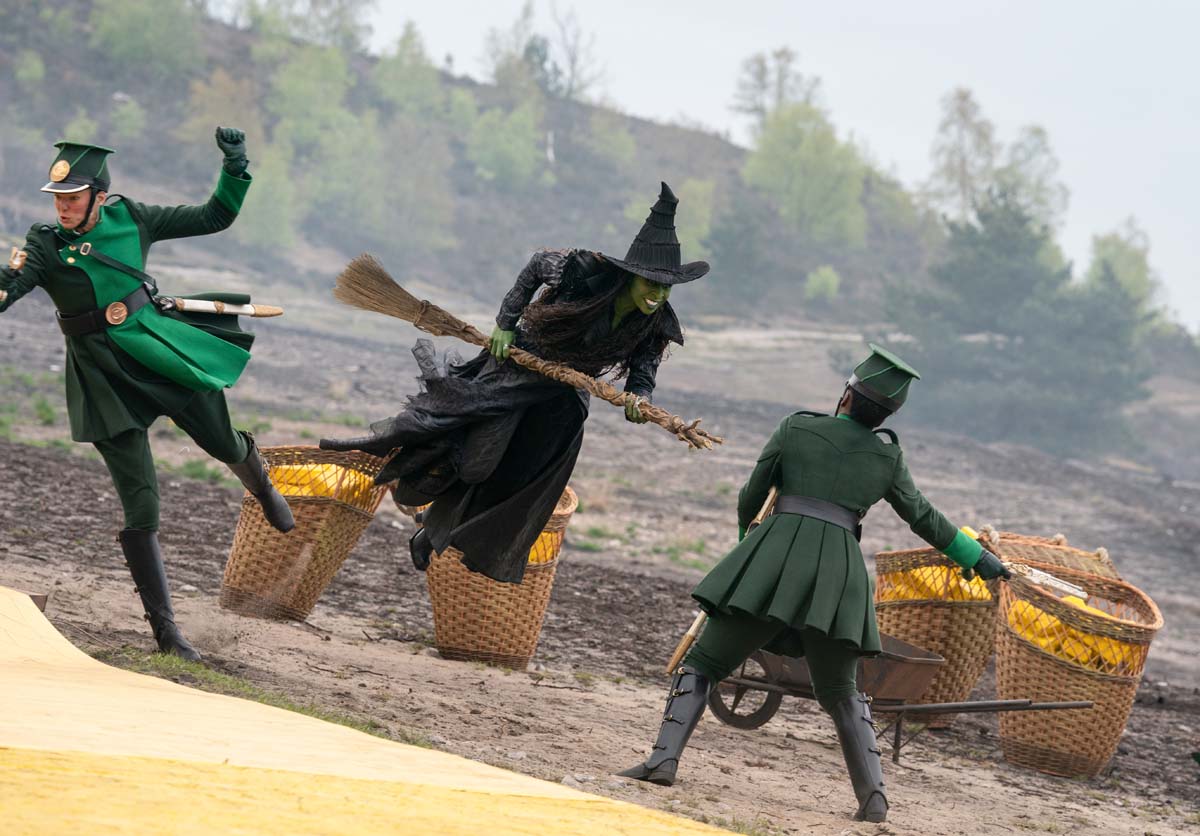 Let’s jump to the editing of a specific scene. One I was really interested in was the opening Elphaba attack on the Yellow Brick Road. That was a real action thriller moment.