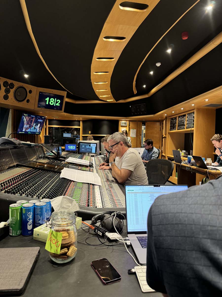 The sound crew wasn’t on yet, so my assistant editors, led by Lara Khachooni (1st AE), Ed Marsh (VFX editor), Jack Dolman (lead music editor), and Catherine Wilson (music editor).