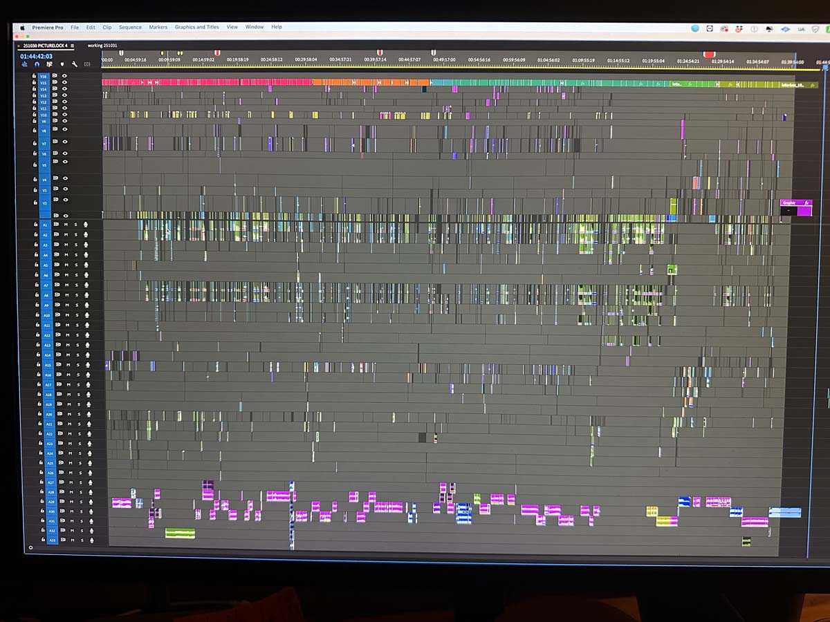 I was cutting right away with sort of a loose outline, cutting with some ideas of a structure, but mostly focusing on the opening since we didn’t have a bunch of interviews yet, focusing on how we were going to set the tone for the film, how we were going to bring people into it, and what that subject matter would be.