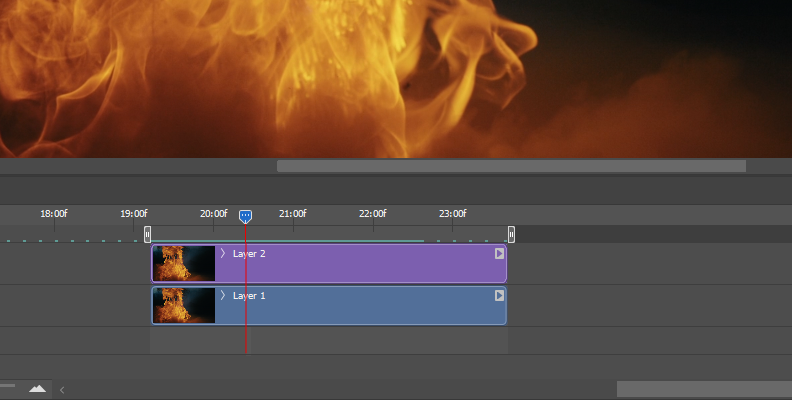 Drag the new layer copy above the video clip in the timeline panel. Adjust the length of the layer to the length of the video clip in the layer below using the brackets. Similar to how you trim the first video layer.