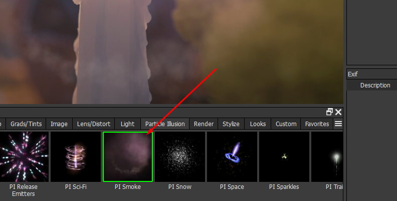 Among the many filters and tools provided by Optics, Particle Illusion will allow you to craft your cinemagraph from scratch by animating your image with particles such as smoke, water, fire, rain, and more.