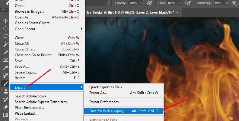 Play the sequence to verify that everything looks as desired. When you're ready to export the cinemagraph, go to the File menu and select Export > Save for Web (Legacy).