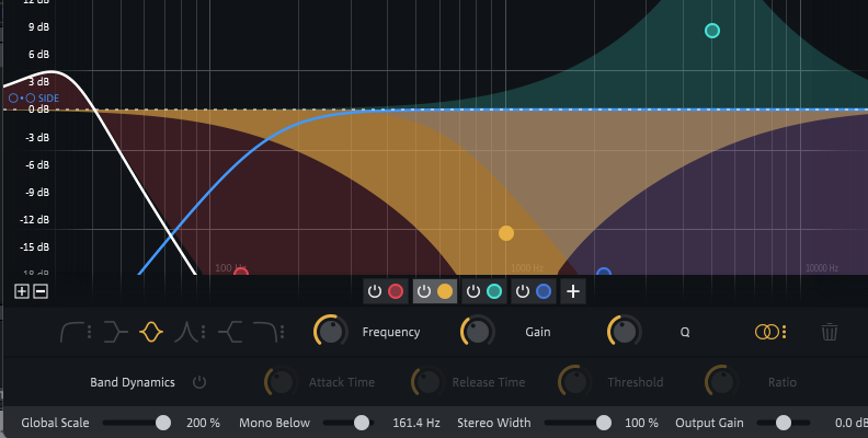 You can keep your instruments clear from each other with the help of a dynamic EQ. Often, mixer engineers use sidechain compression to solve this separation issue, but your mix may lack transparency. A dynamic EQ makes this easier than sidechaining instruments by setting a cut on the frequencies where the instruments clash. You can add the dynamic EQ to a single instrument or to a group of instruments in a bus track to achieve a more transparent separation.