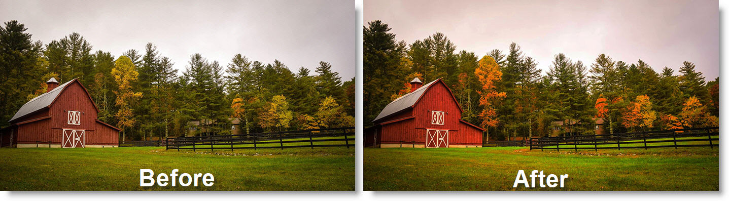 Modern color film has much broader color filtering in the emulsion layers, so this effect simulates the narrower filters and sharper colored dyes of the era which gave it its characteristic vibrancy. This effect also allows adding grain and color correction.