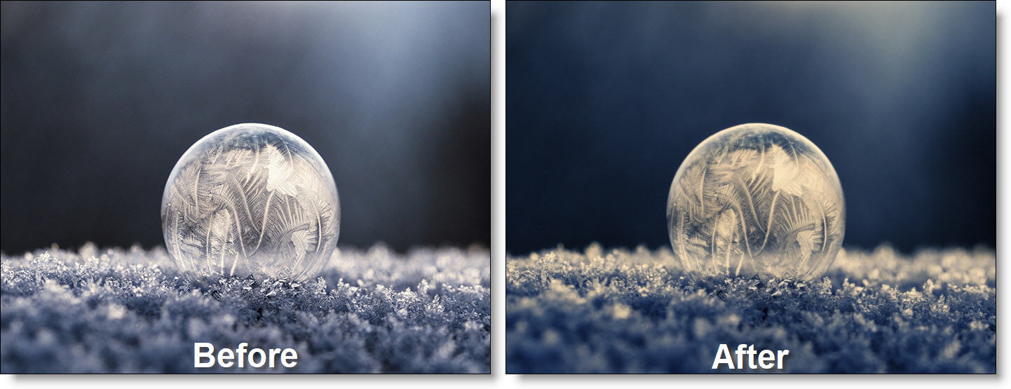 Shadows, midtones and highlights can be individually tinted with the Split tone filter.