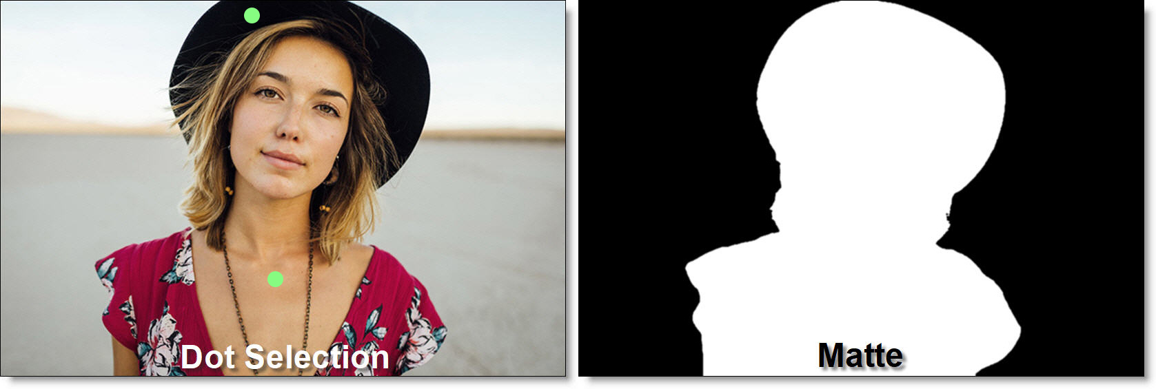 Mask ML is an easy to use point and click, single frame mask generator utilizing machine learning object segmentation. A single click selects a defined segment of the image while successive clicks add adjacent areas to the object. The masks are useful as input to the Matte Assist ML node where the mask is propagated over time or to limit strokes in the Paint node.